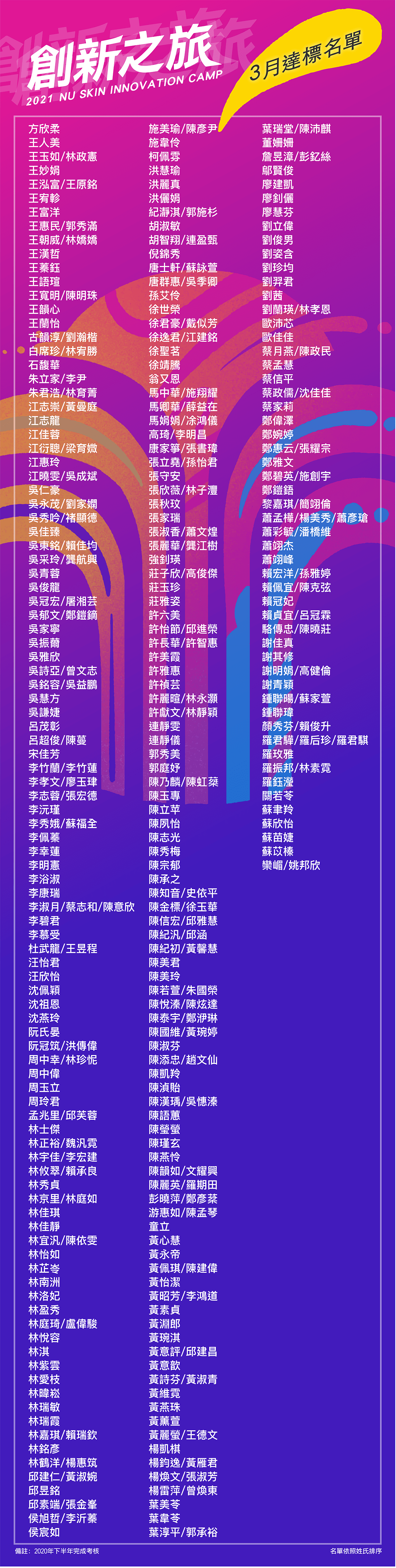 恭賀2021創新之旅達標夥伴,達標名單如下