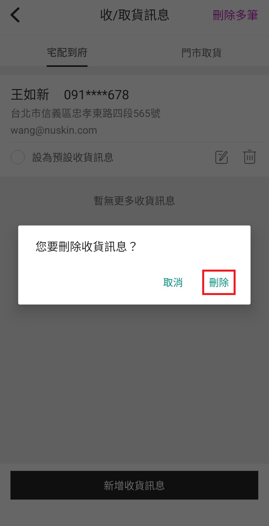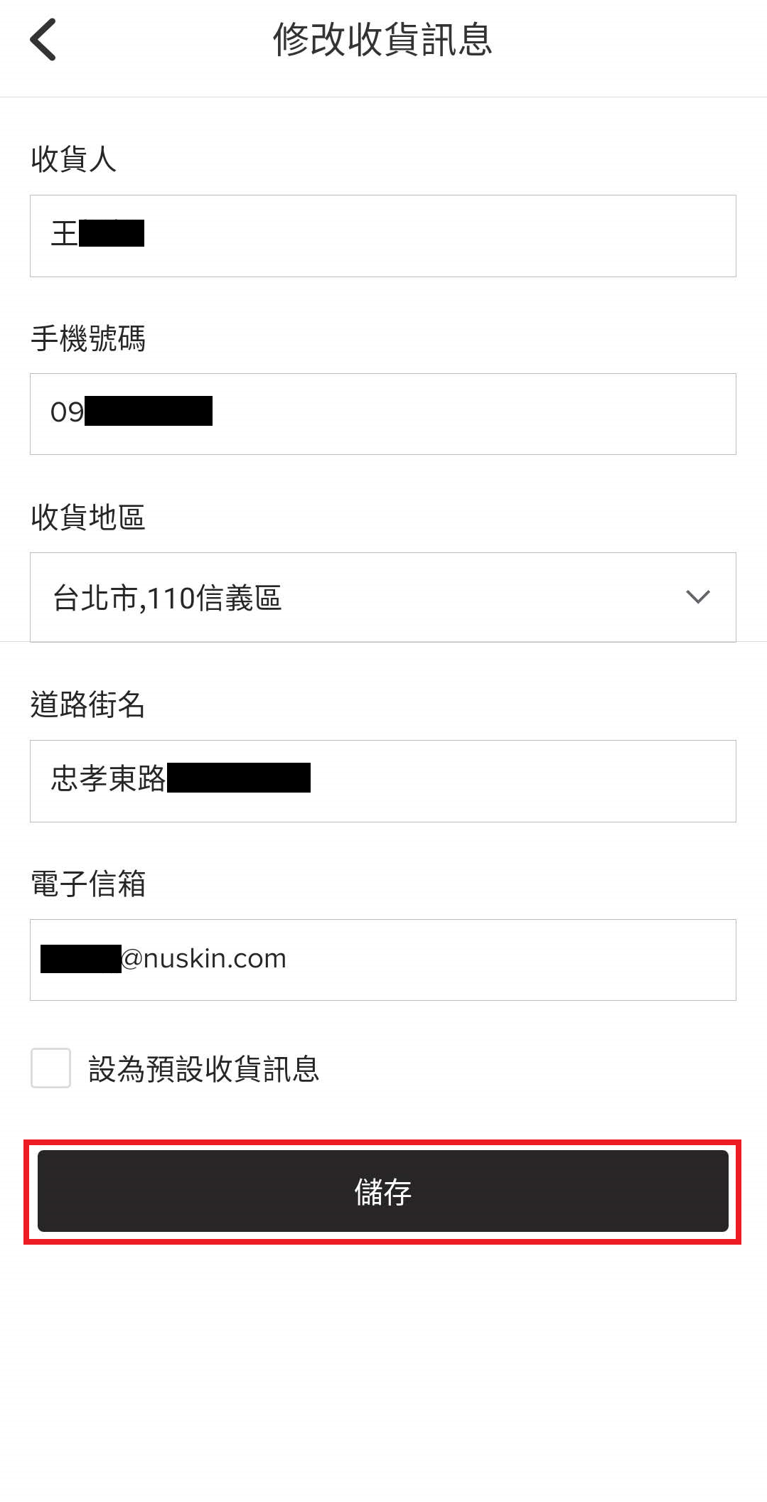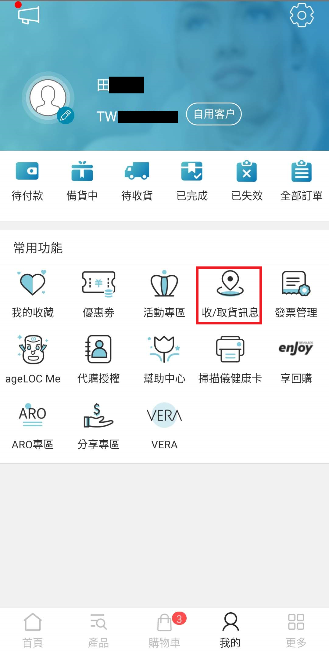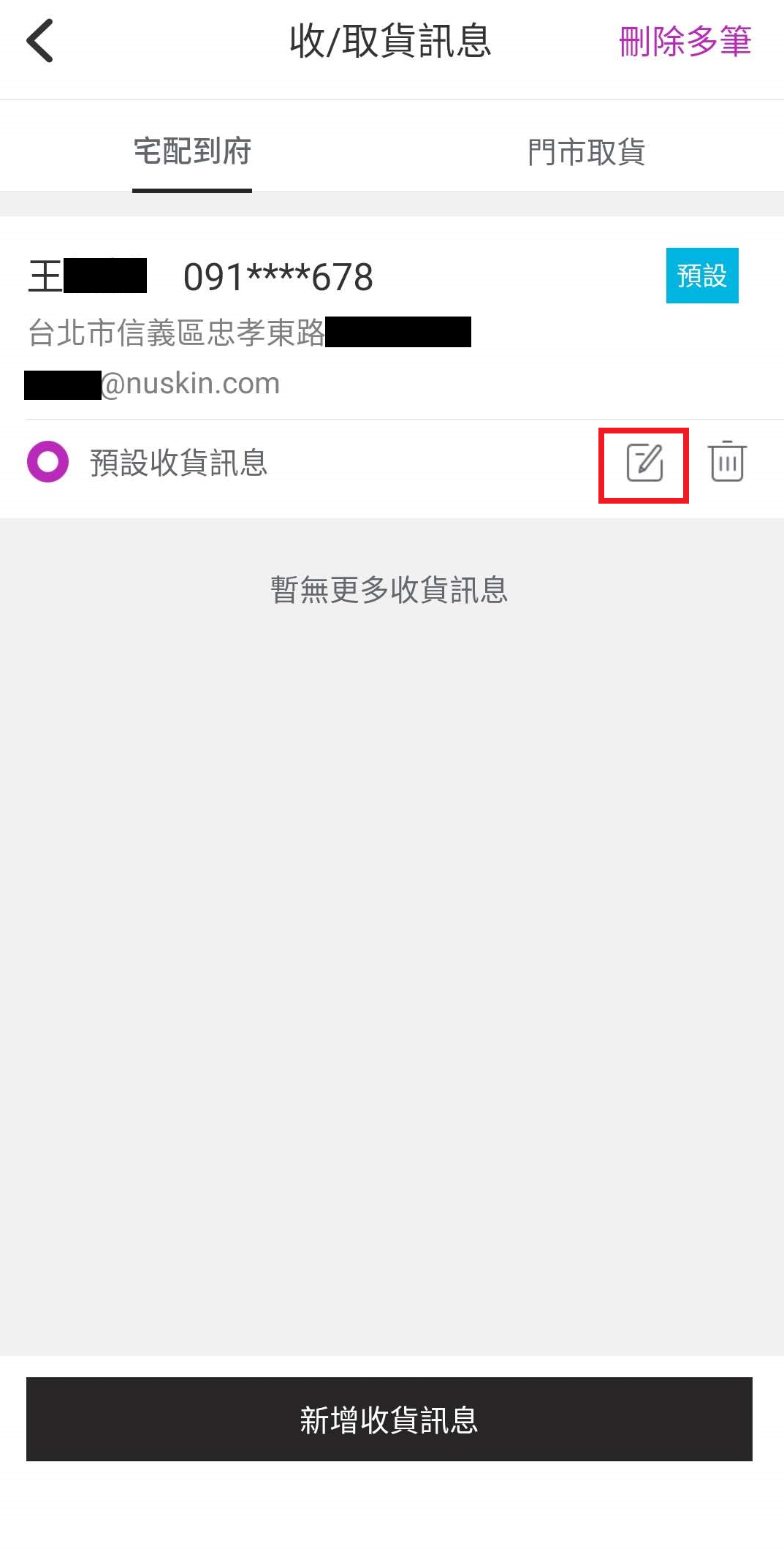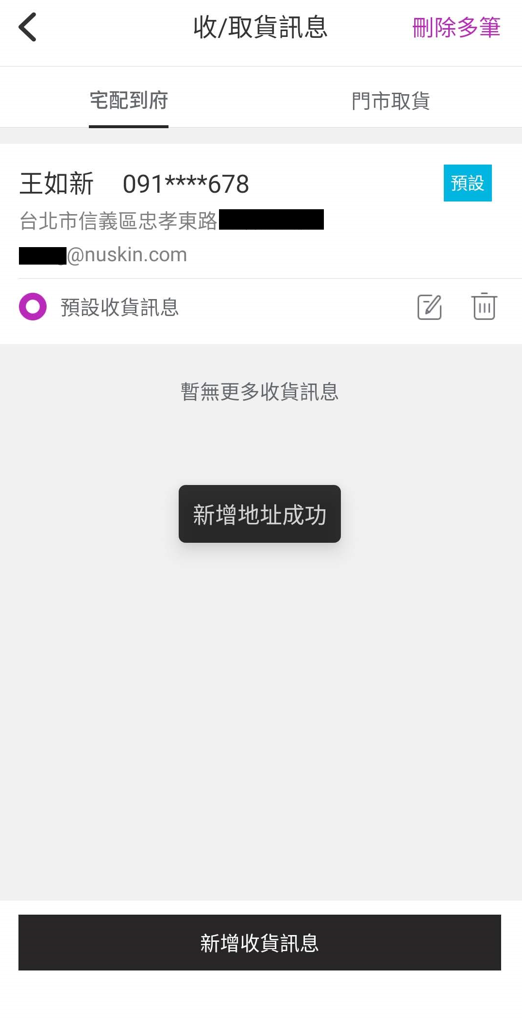 ※ 小提醒:每次購物結帳時,系統會自動顯示「預設收貨訊息」,如需調整地址資訊,請記得在確認訂單頁面選擇其他地址。