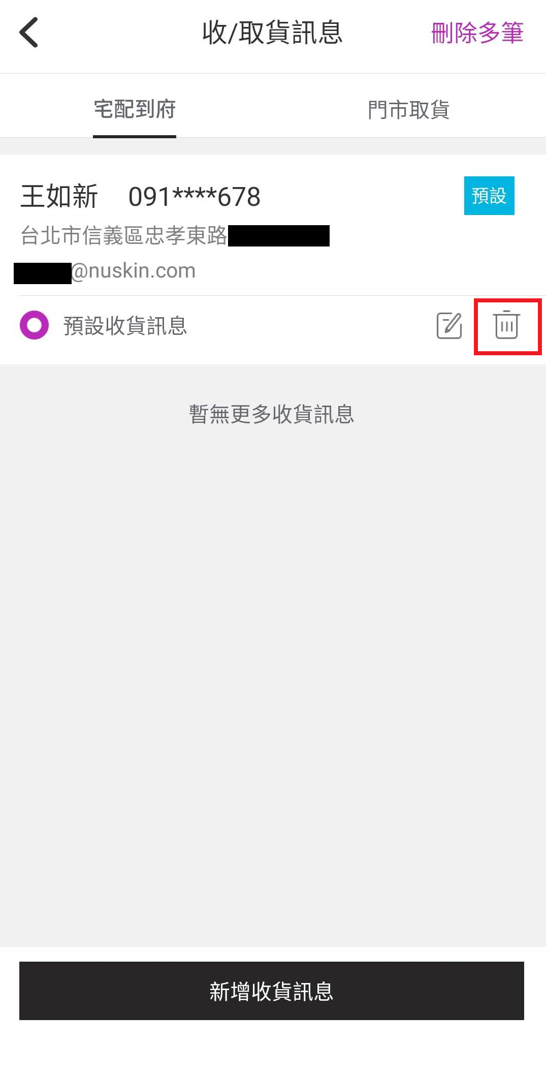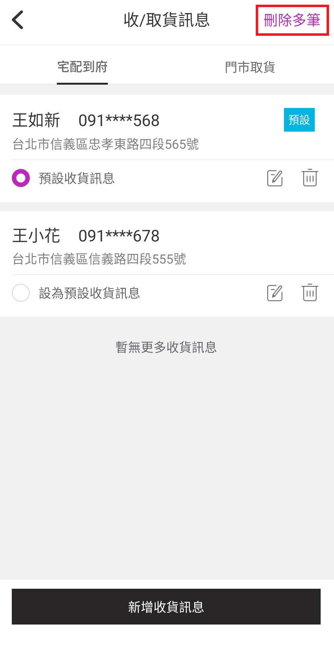 A:新享購最多可以新增50筆常用地址(收/取貨訊息)!如果不夠用,可以將較少用的地址刪除或重新編輯就可以重複利用囉!