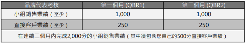 → 會員於考核期達成以下考核要求,即可於次周晉升為品牌代表