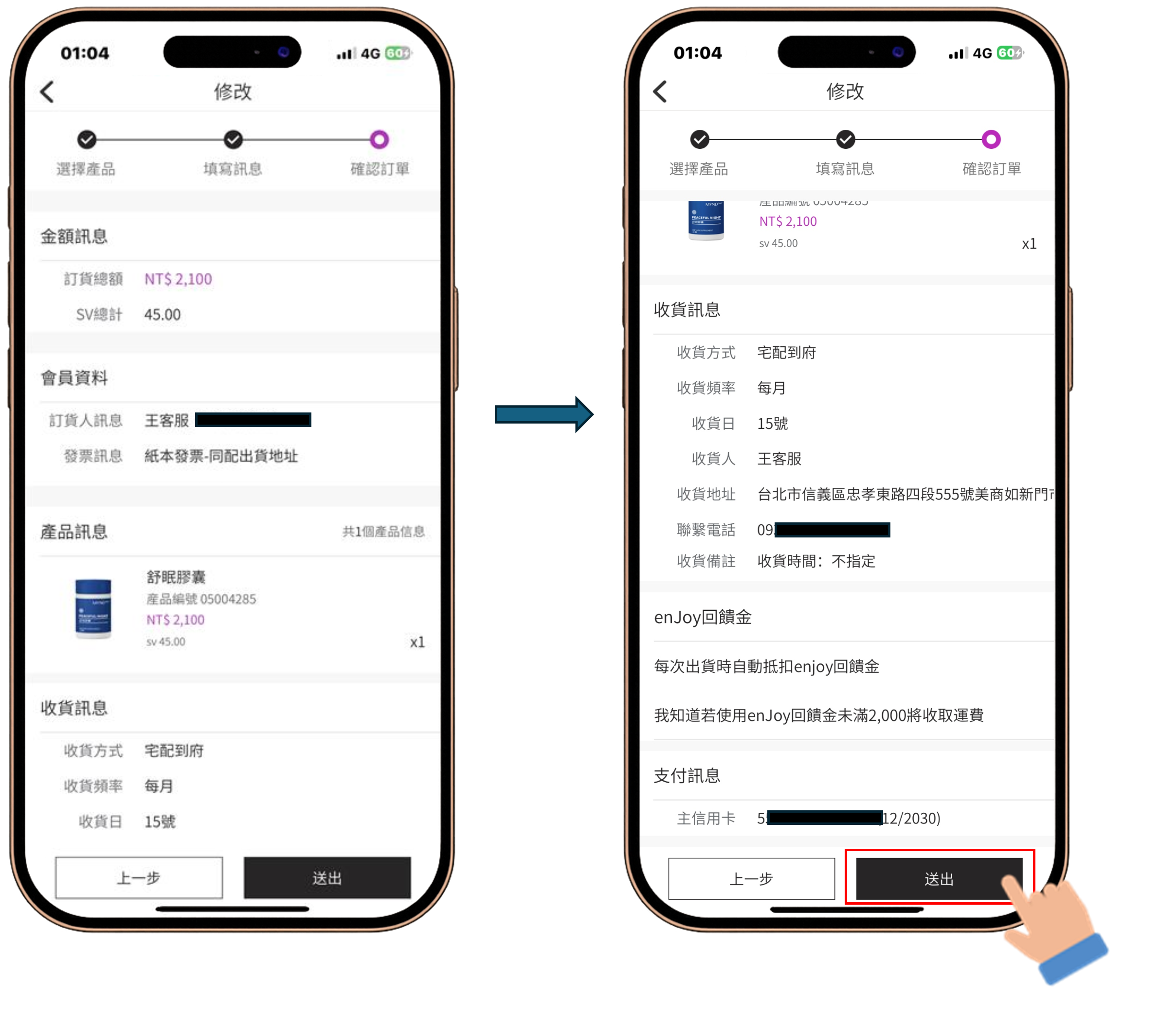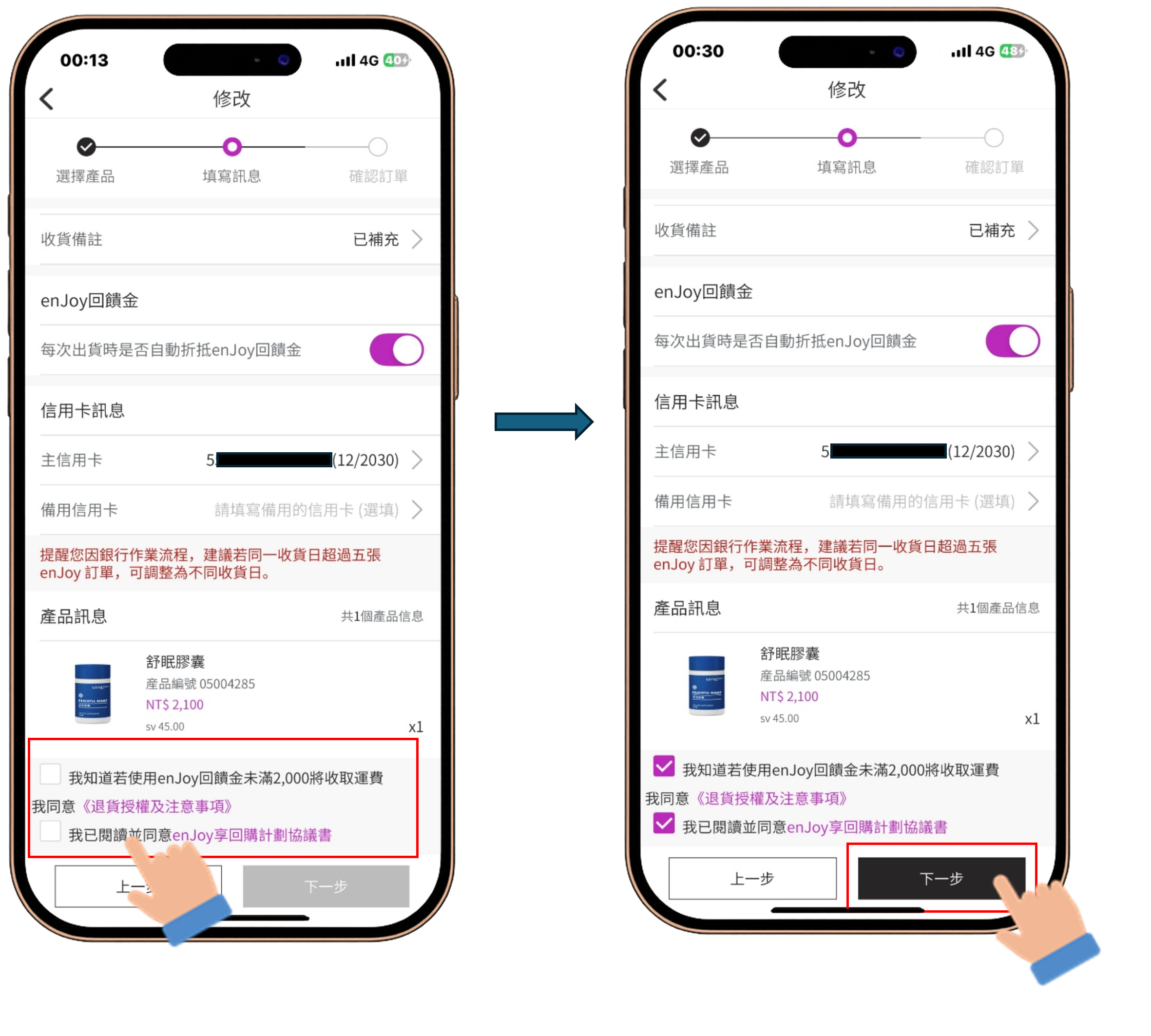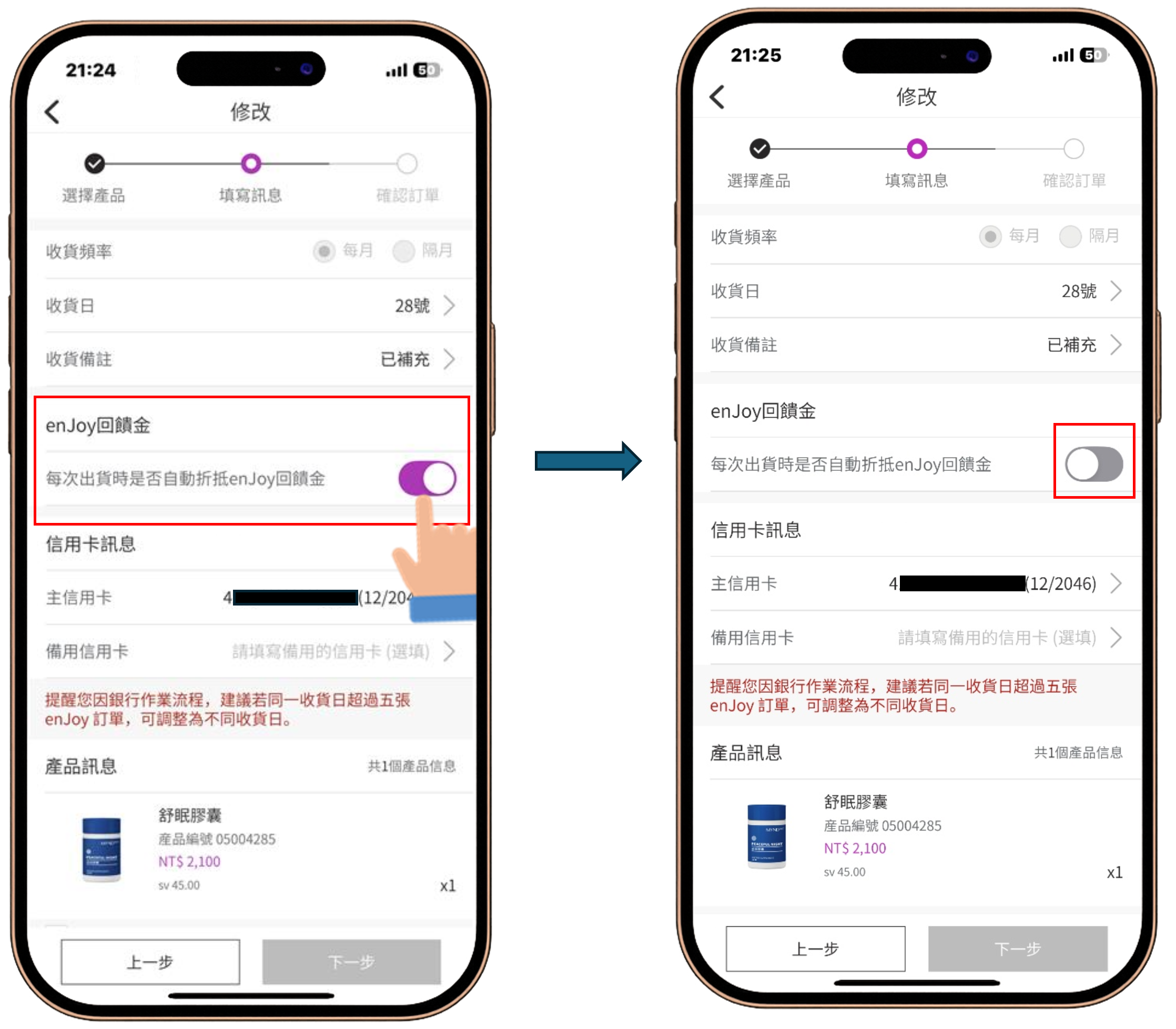 enJoy 享回購好處多多,除了享有配送免運費之外,每筆enJoy訂單還有最高達 20%的回饋金可以折抵下一筆enJoy訂單金額(詳情請見:enJoy享回購定期配送回饋方案)。現在就讓我們來了解要如何修改enJoy享回購內容或暫停出貨吧!
