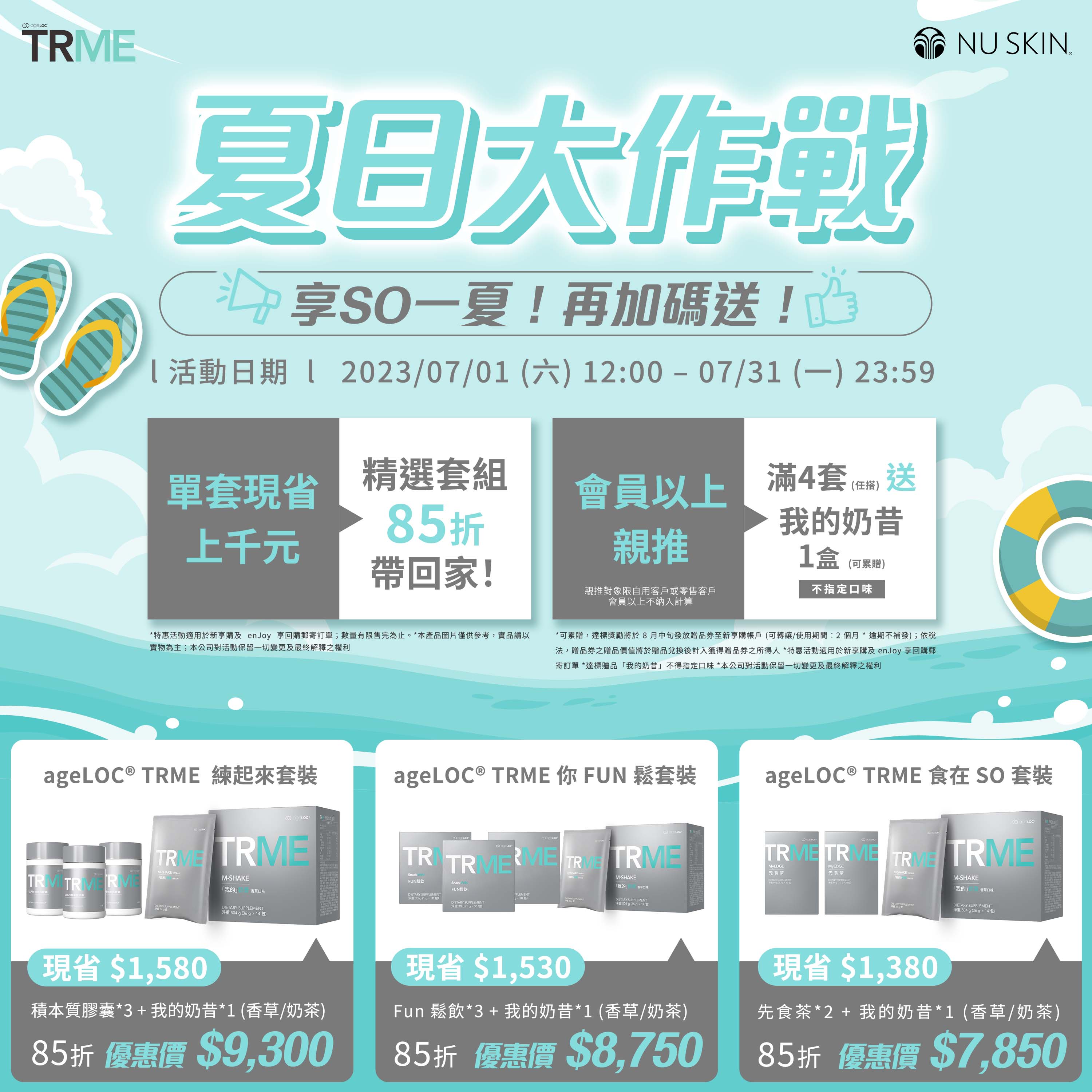 活動對象於活動期間內親推之自用客戶或零售客戶購買指定 TRME 套裝,累積任 4 套,即送 TRME 我的奶昔乙盒(不得指定口味)。可累贈,多推多得。