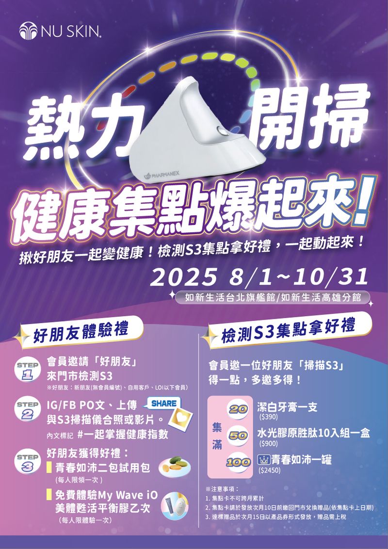 ♦️會員邀約好朋友至門市「S3檢測」,即可累計點數,多邀多得!
