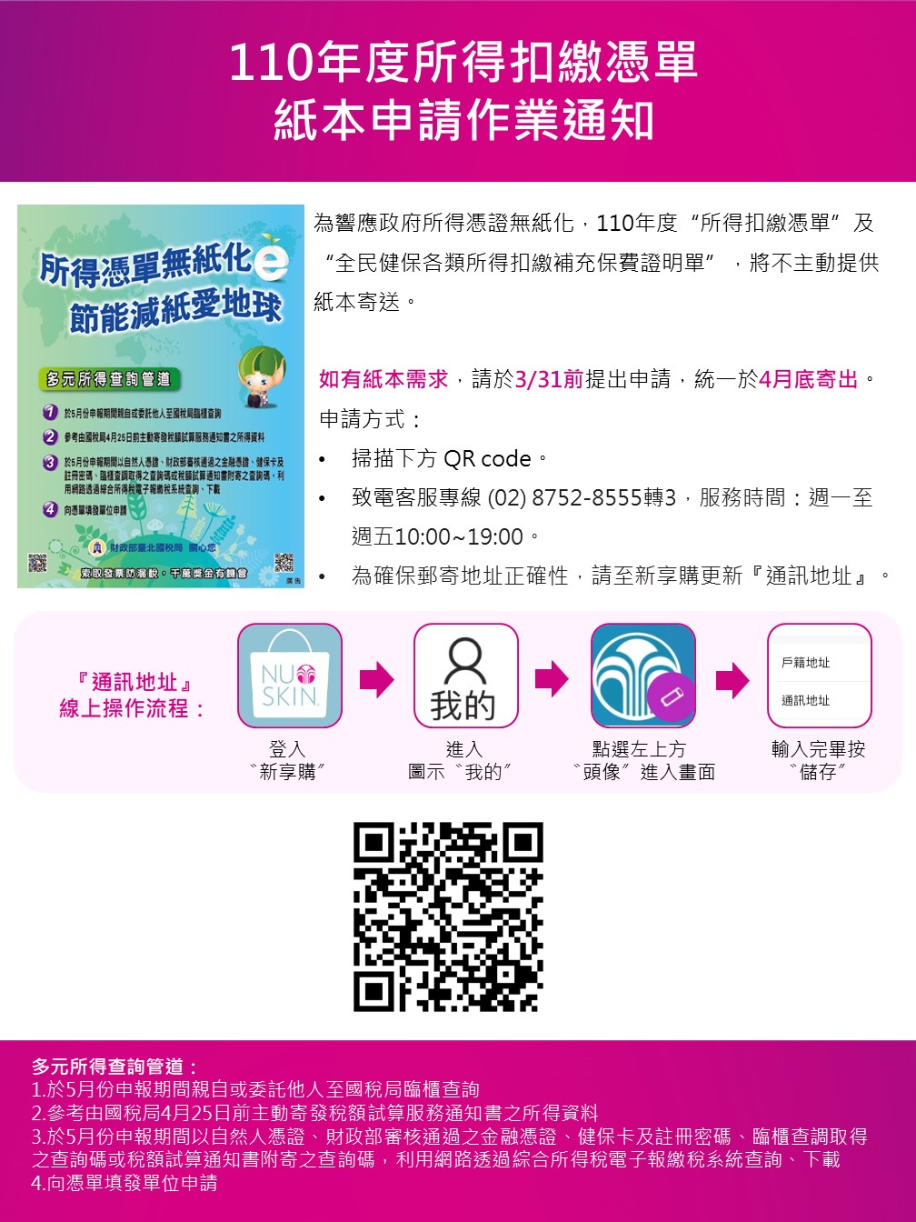 110年度所得扣繳憑單 紙本申請作業通知