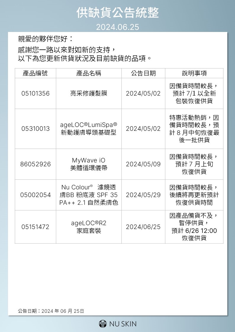 供缺貨公告統整 2024.06.25