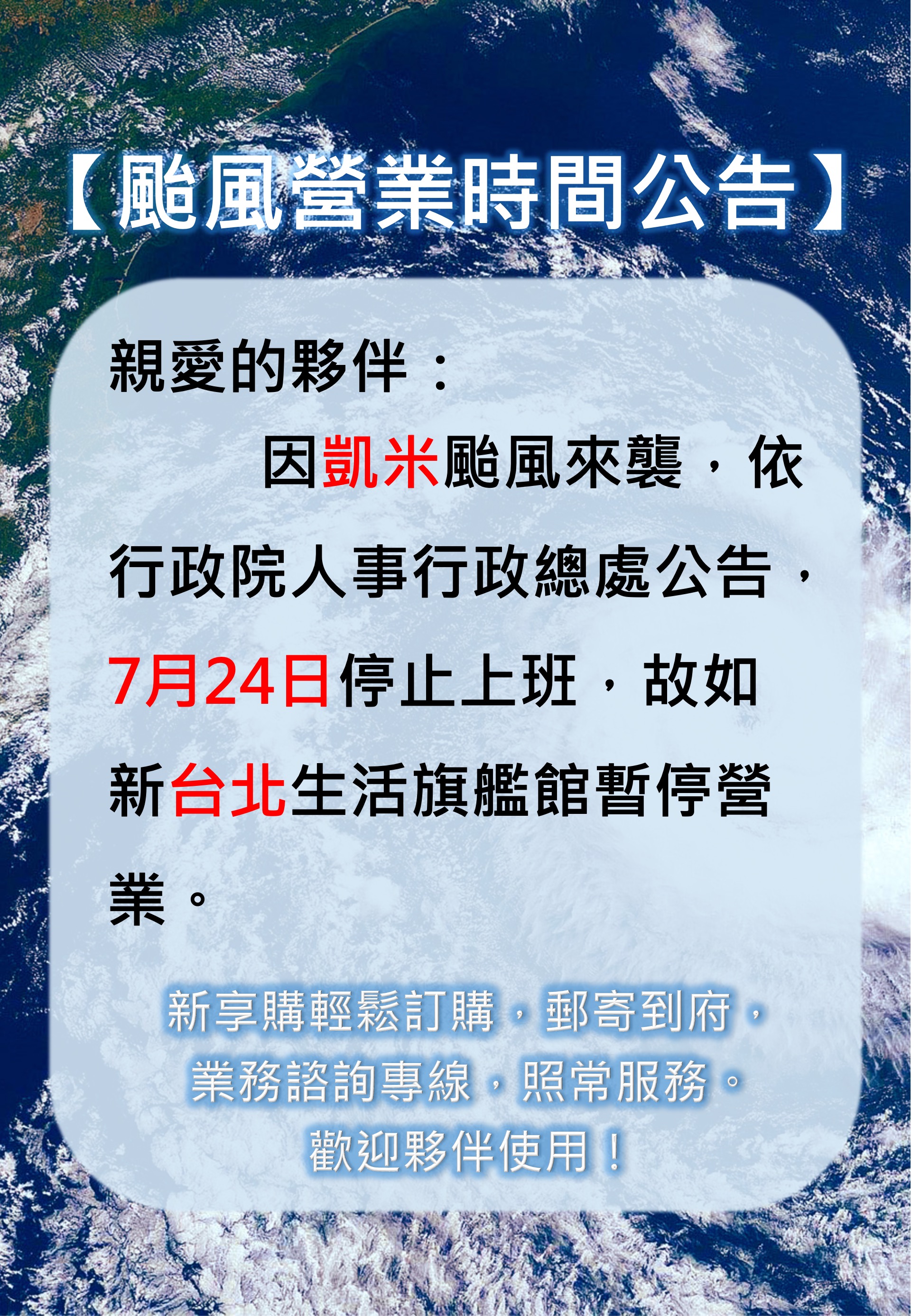 颱風來襲,7月24日台北生活旗艦館暫停營業
