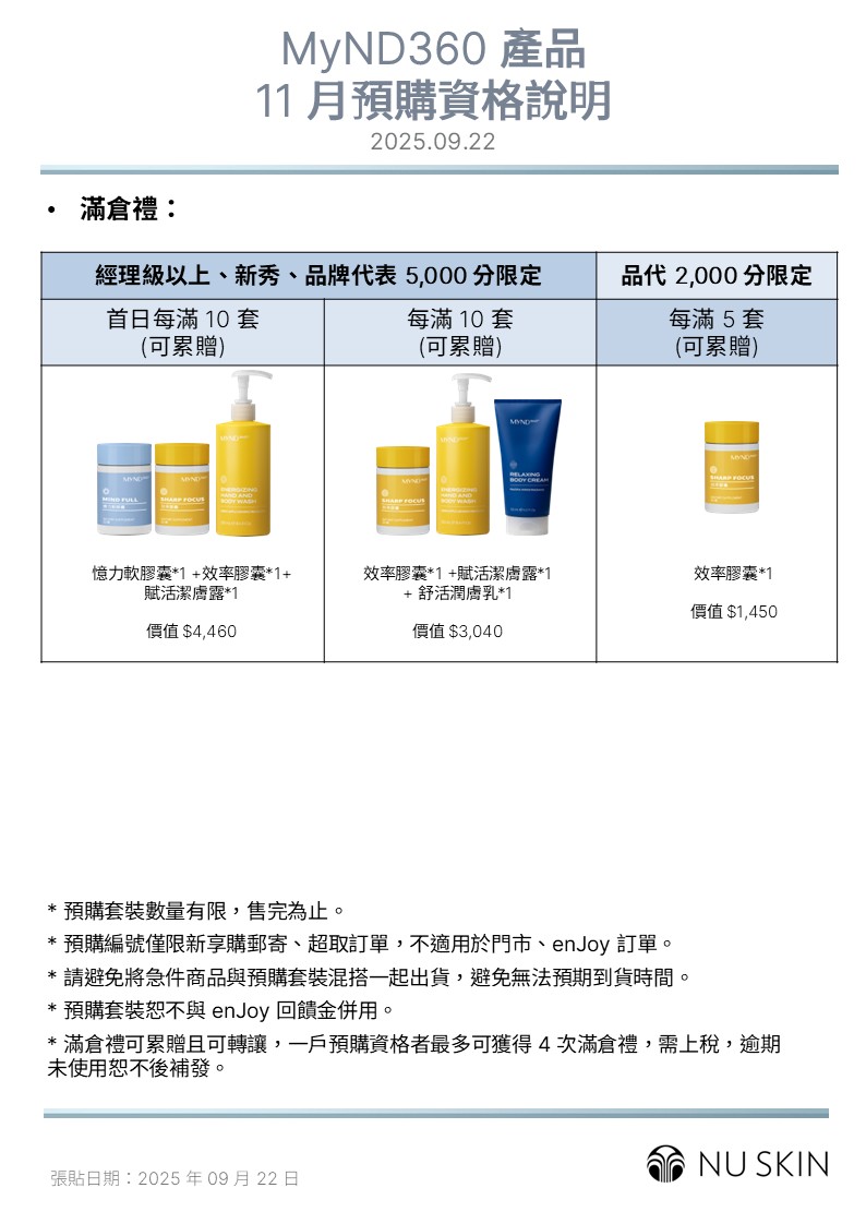 MyND360 11月份預購活動及資格公告 2025.09.22