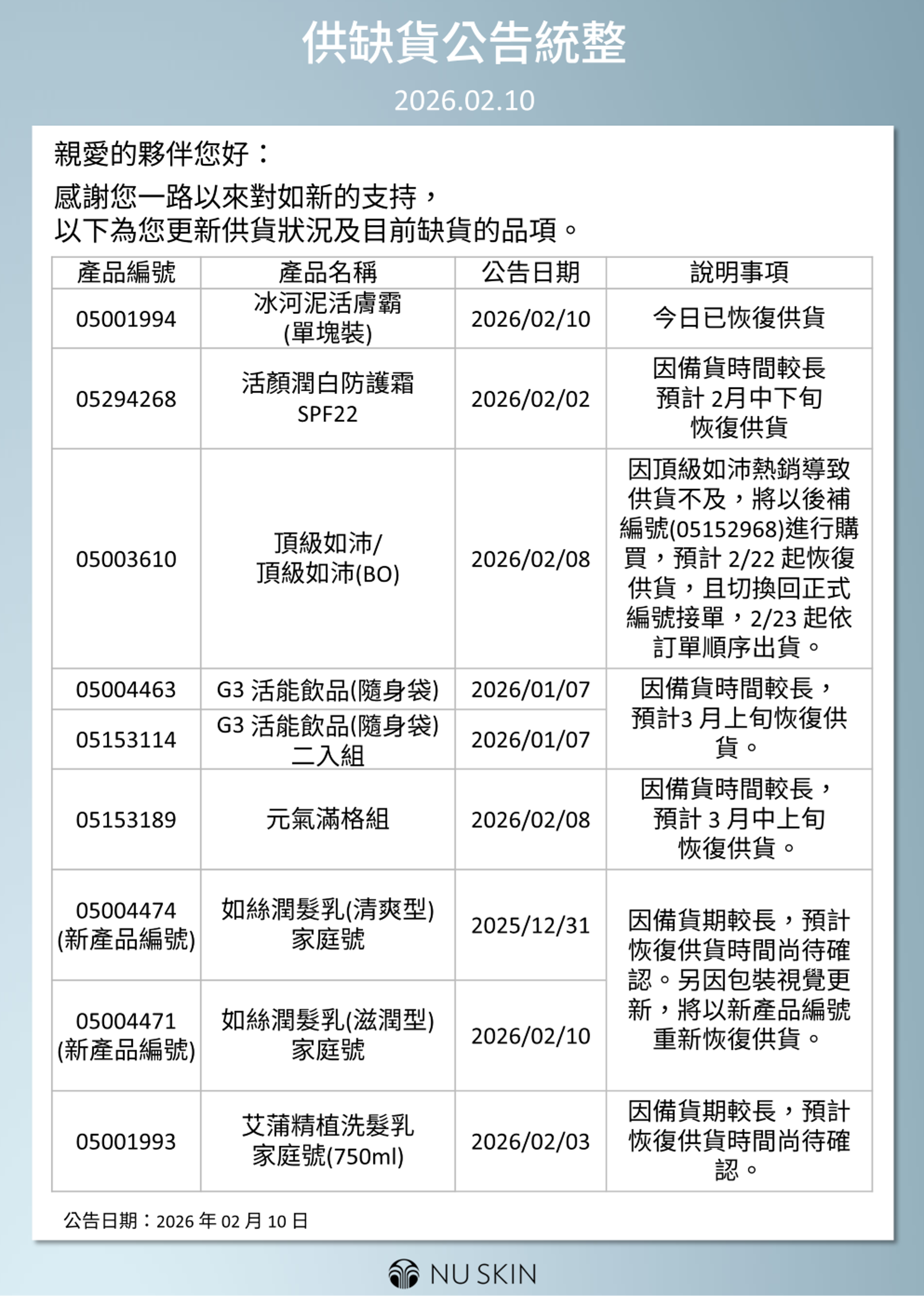 供缺貨公告統整 2026.02.10