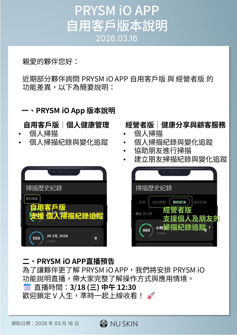 PRYSM iO APP 自用客戶版本說明