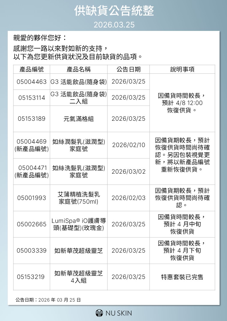 供缺貨公告統整 2026.03.30
