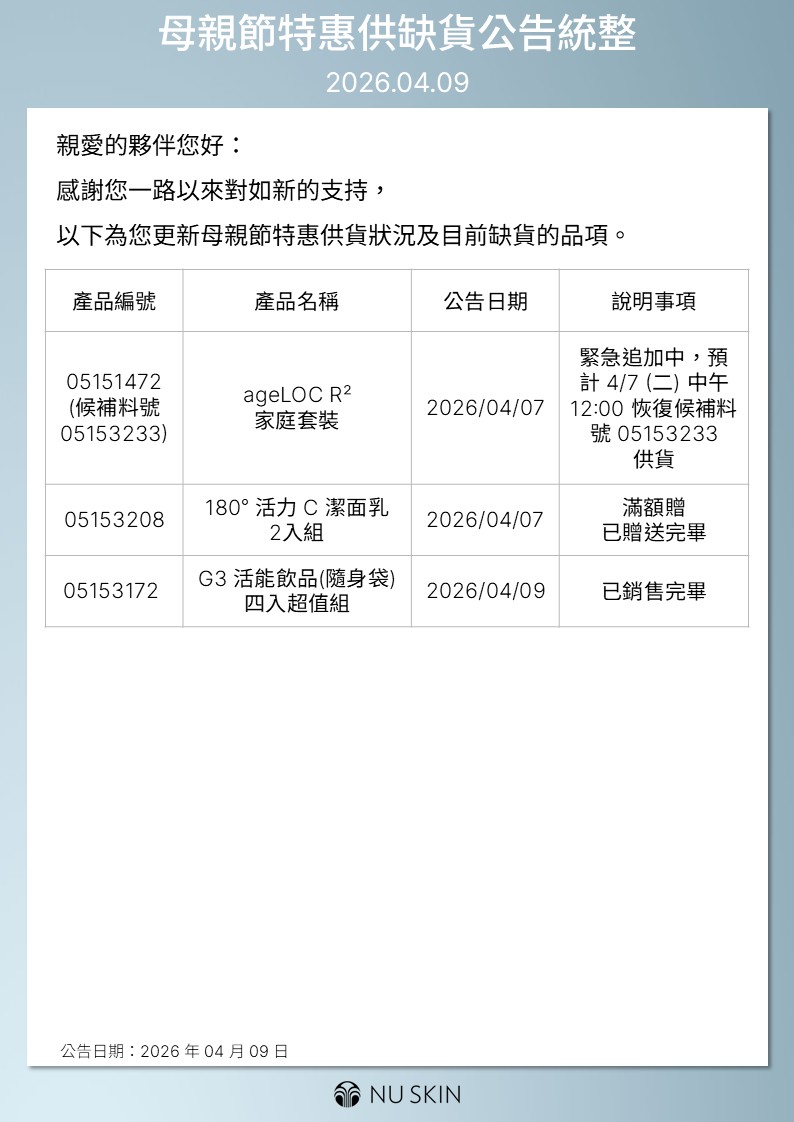 母親節特惠供缺貨公告統整 2026.04.09
