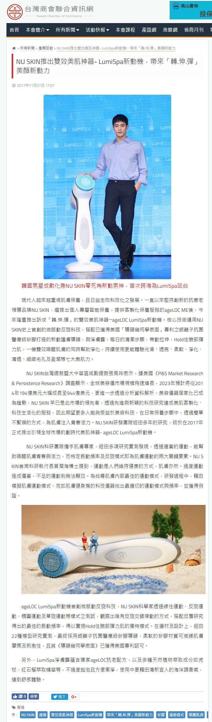 20171127_台灣商會聯合資訊網_NU SKIN推出雙效美肌神器- LumiSpa新動機,帶來「轉.伸.彈」美顏新動力