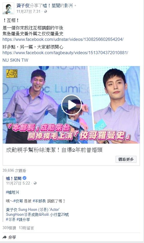 20171127_黃子佼(FB)_!互相!是一個你來我往互相調戲的午後