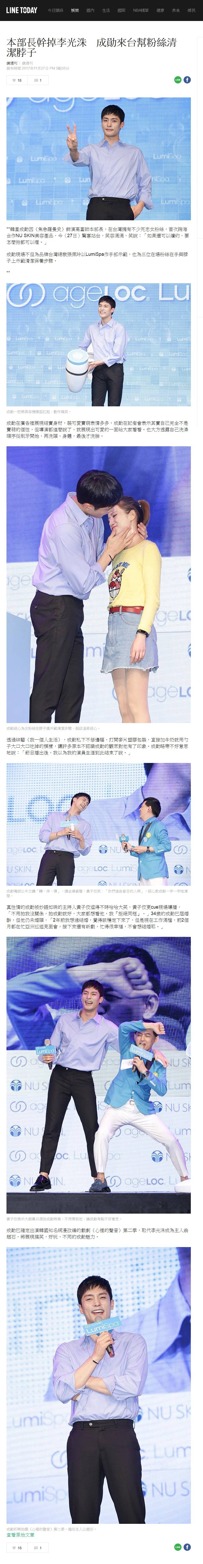 20171127_LINE TODAY_本部長幹掉李光洙 成勛來台幫粉絲清潔脖子