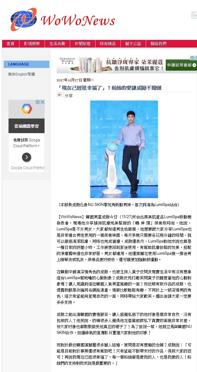 20171127_WoWoNews_「現在己經很幸福了」!粉絲的愛讓成勛不婚頭