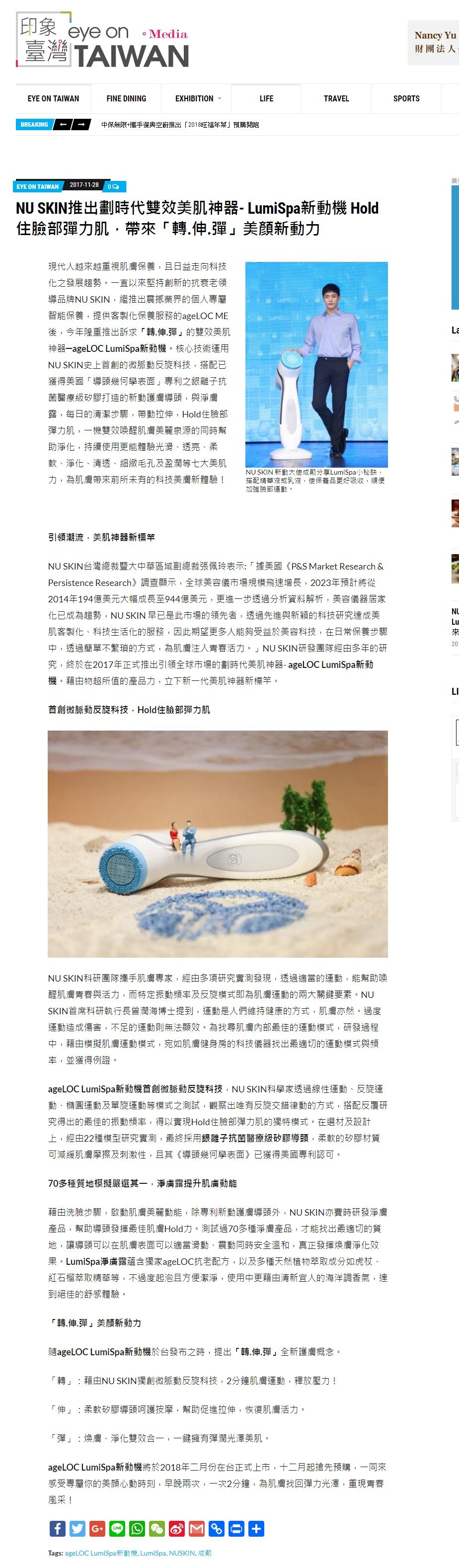 20171128_eye on Taiwan_NU SKIN推出劃時代雙效美肌神器- LumiSpa新動機 Hold住臉部彈力肌,帶來「...