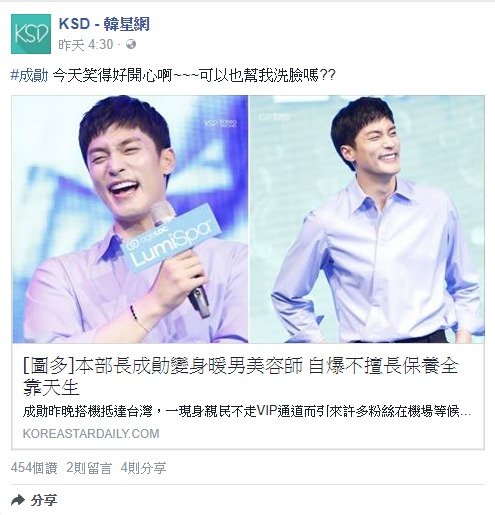 20171128_KSD韓星網(FB)_#成勛 今天笑得好開心啊~~~可以也幫我洗臉嗎