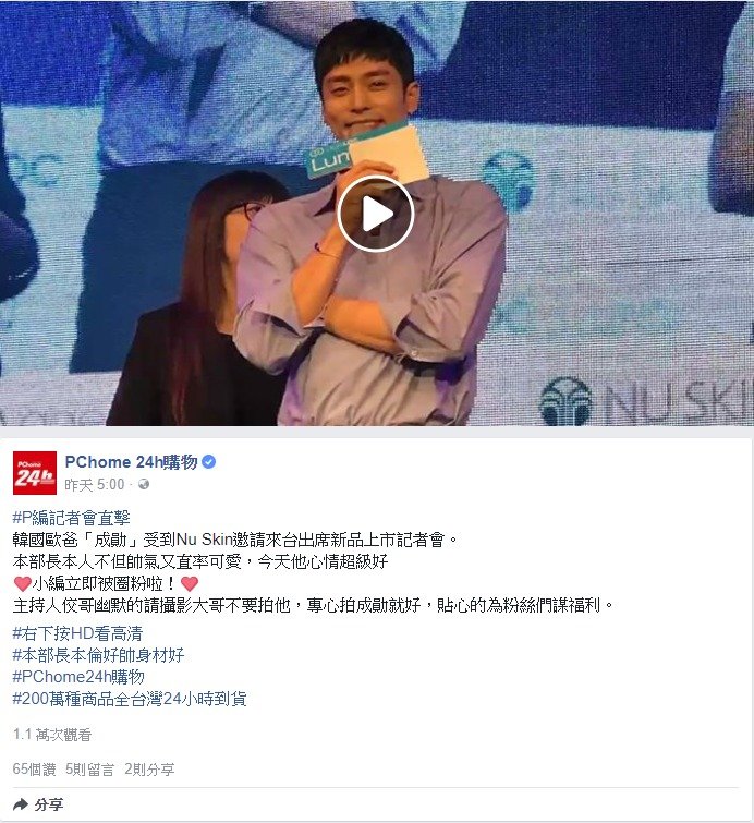 20171128_PChome 24h購物(FB)_韓國歐爸「成勛」受到Nu Skin邀請來台出席新品上市記者會。