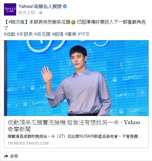 20171128_Yahoo!奇摩名人娛樂(FB)_本部長突然變呆瓜頭 已經準備好要投入下一部喜劇角色了