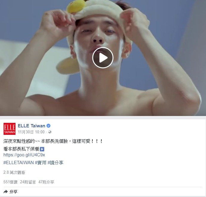 20171130_ELLE Taiwan(FB)_深夜來點性感的~~ 本部長洗個臉,這樣可愛!!!
