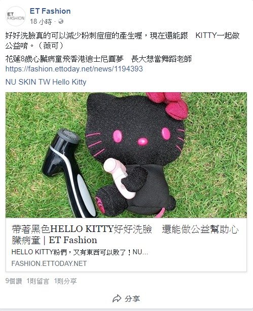 20180621_ETFASHION(FB)_好好洗臉真的可以減少粉刺痘痘的產生喔,現在還能跟 KITTY一起做公益唷。