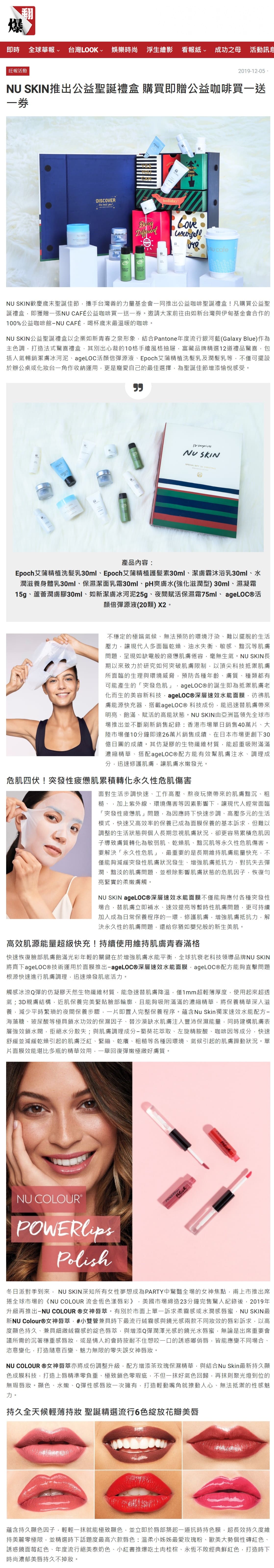 【NU SKIN】20191205_中時翻報_NU SKIN推出公益聖誕禮盒 購買即贈公益咖啡買一送一券