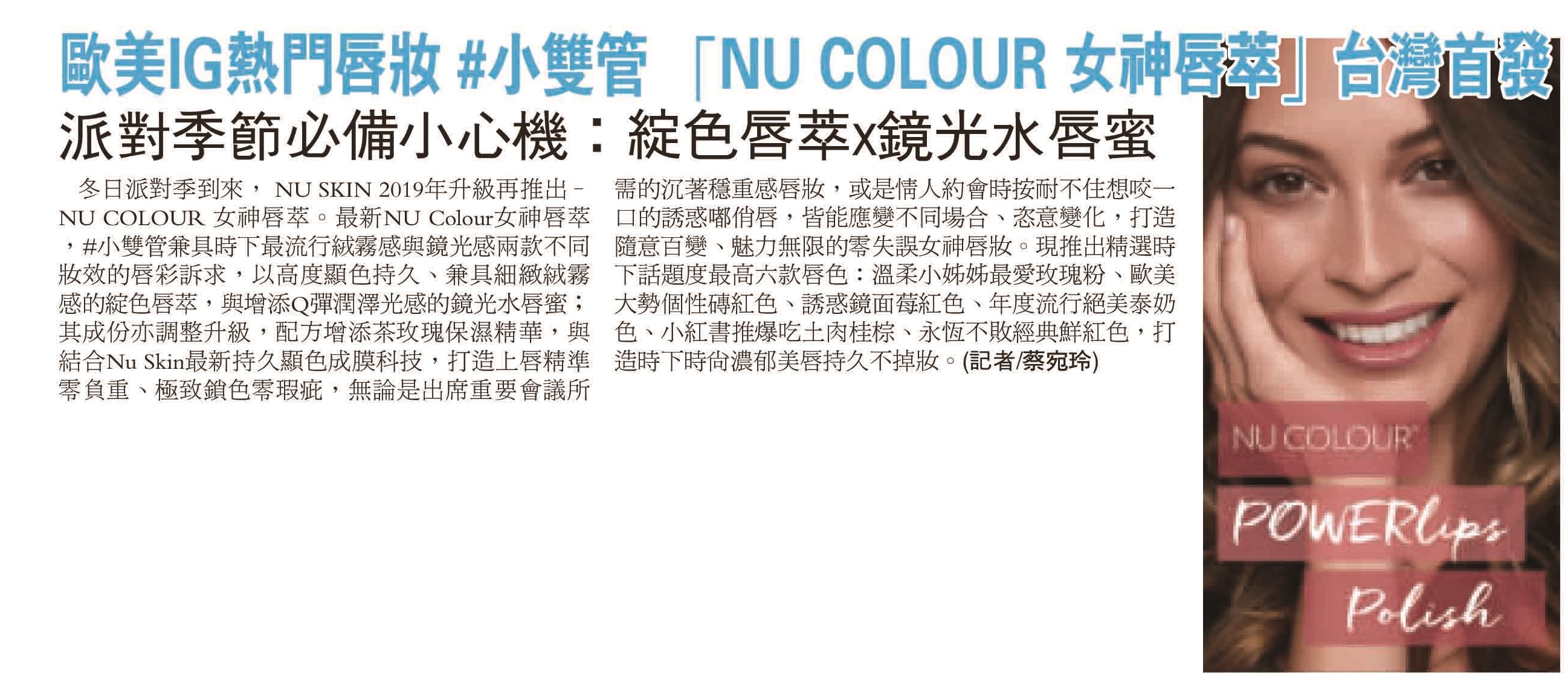 【NU SKIN】20191205_更生日報18_歐美IG熱門唇妝 #小雙管「NU COLOUR女神唇萃」台灣首發