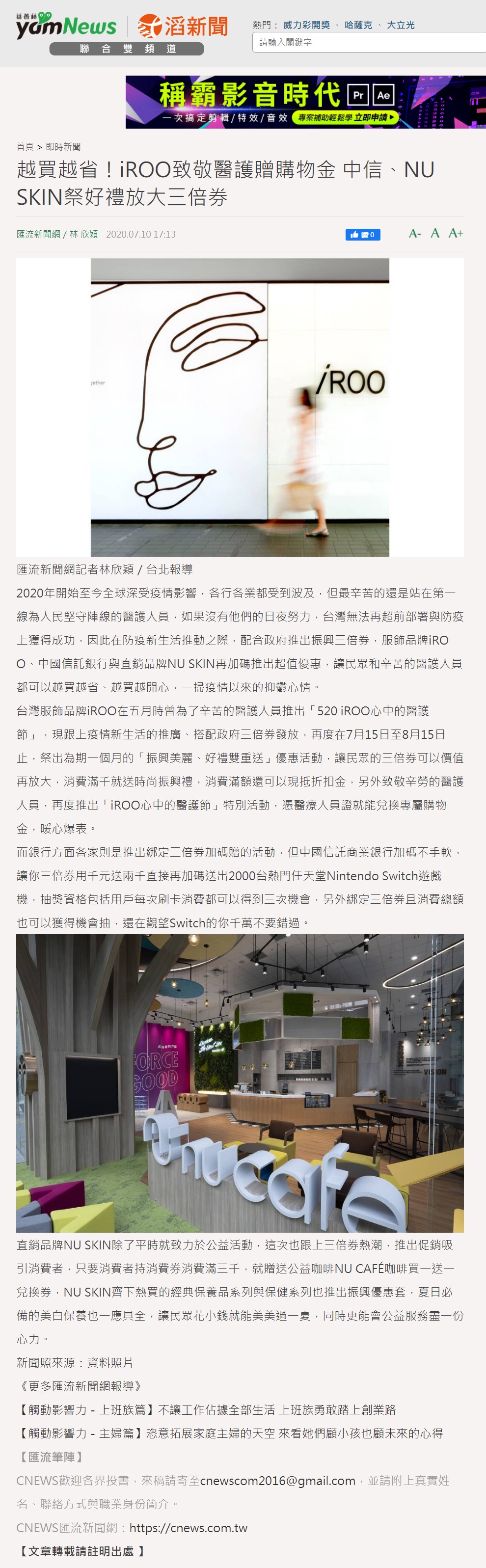 Yahoo新聞_越買越省!iROO致敬醫護贈購物金 中信、NU SKIN祭好禮放大三倍券