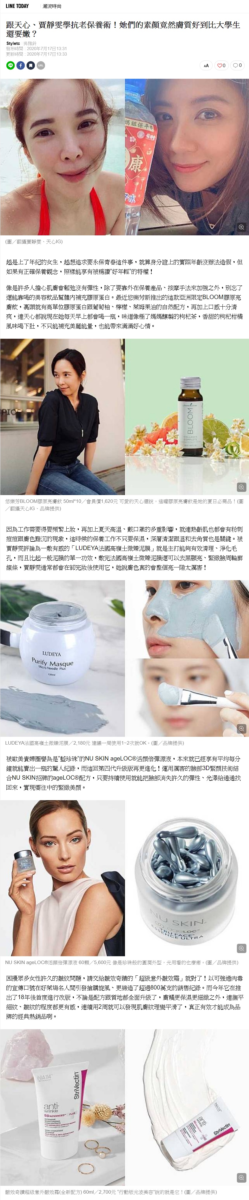 LINE TODAY_跟天心、賈靜雯學抗老保養術!她們的素顏竟然膚質好到比大學生還要嫩?