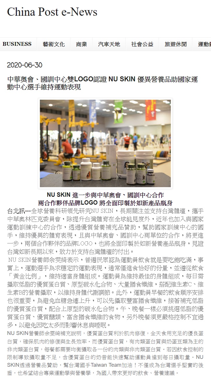 China e-Post_中華奧會、國訓中心雙LOGO認證 NU SKIN 優異營養品助國家運動中心選手維持運動表現