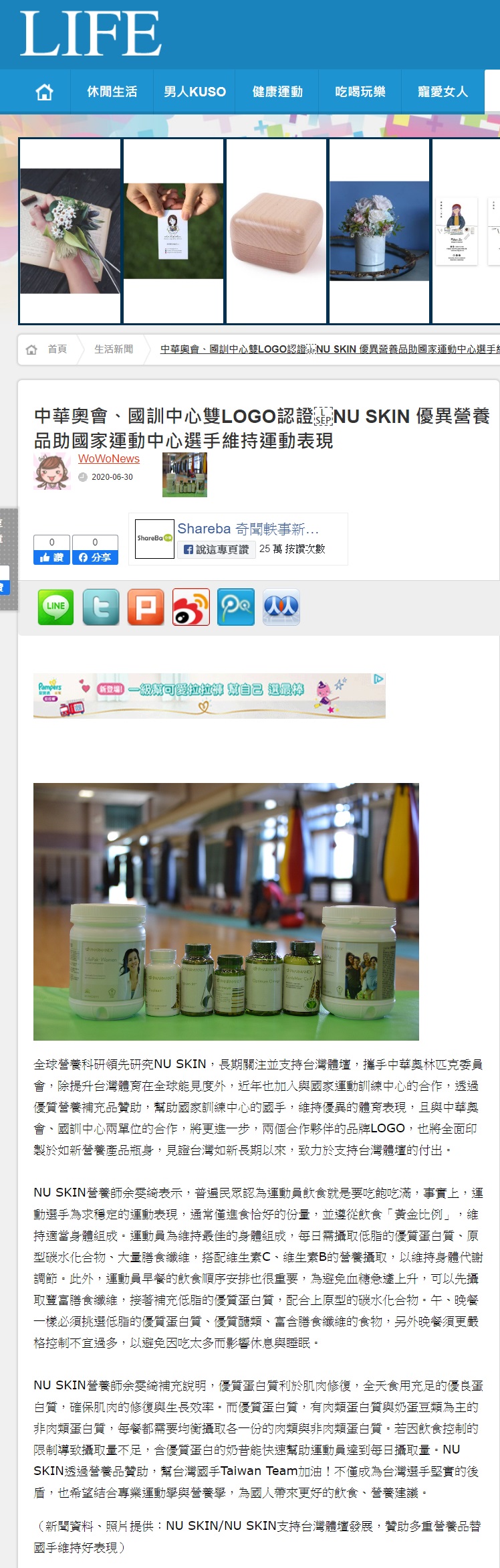 LIFE生活網_中華奧會、國訓中心雙LOGO認證 NU SKIN 優異營養品助國家運動中心選手維持運動表現